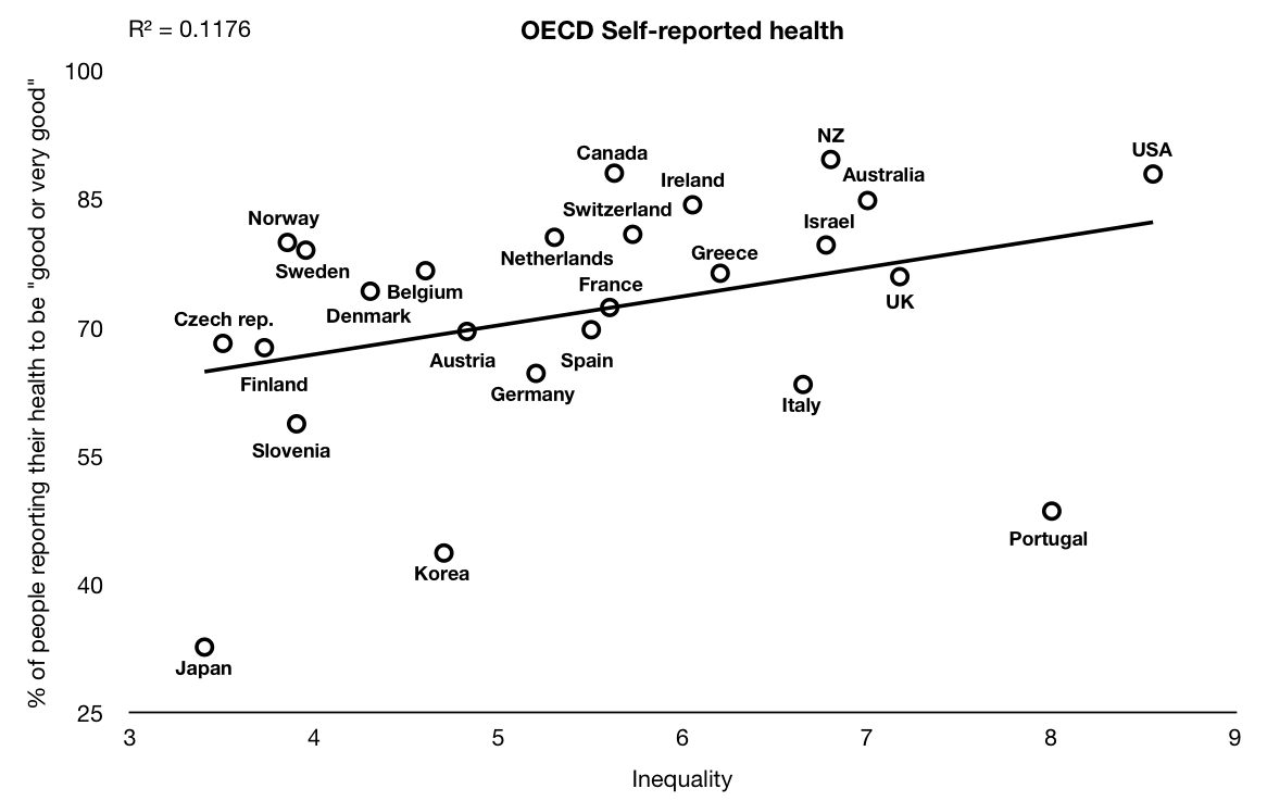The Spirit Level Delusion (2010) that most of Wilkinson and Pickett's statistical correlations were the result of selection bias in the countries, criteria and datasets used by the authors. They looked at the 50 richest countries in the world (on the basis that these societies were wealthy enough to not benefit from further growth whereas outcomes in poorer countries would be confounded by the effect of GDP). However, they only used 23 of these countries - often fewer - in their analysis. The poorest of them was Portugal but several countries with a higher GDP than Portugal were excluded for no good reason. When I added these countries, many of the associations with inequality disappeared (see footnote 1).